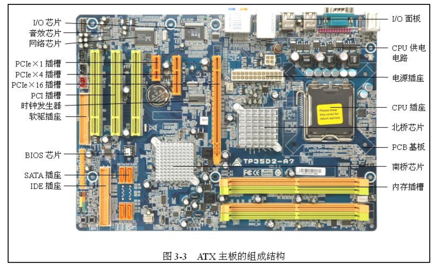 主板一般为矩形电路板,上面安装了组成计算机的主要电路系统,一般有BIOS芯片、I/O控制芯片、键和面板控制开关接口、指示灯插接件、扩充插槽、主板及插卡的直流电源供电接插件等元件。
