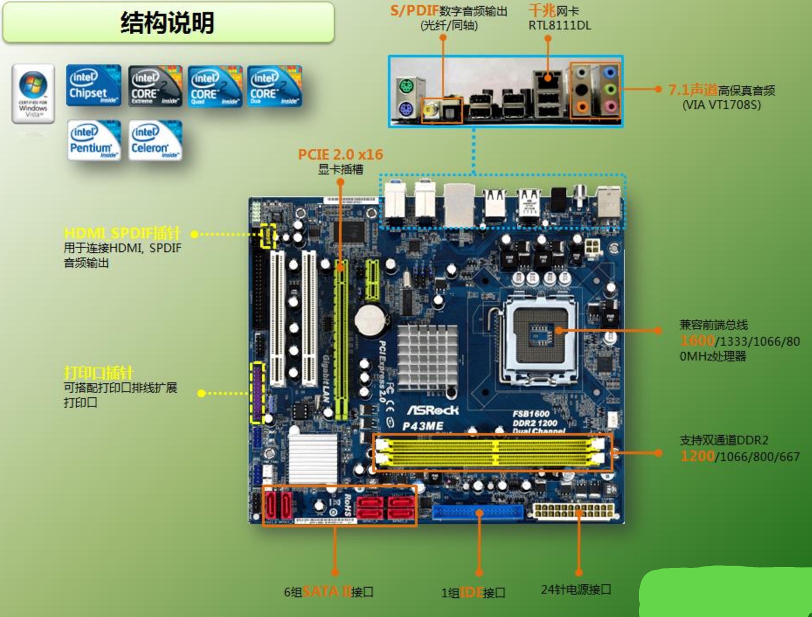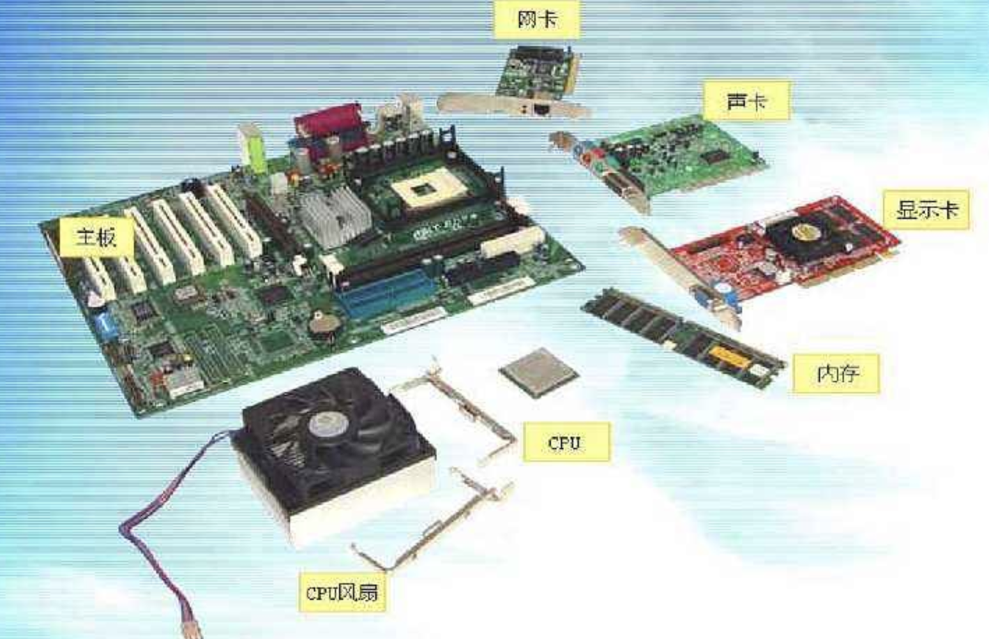 计算机的组成部分,就以普通家用主机分析,依次有: